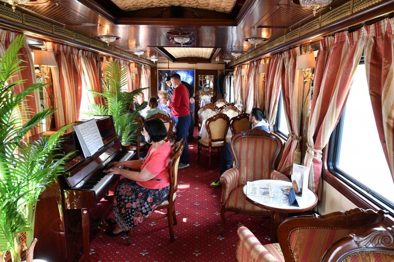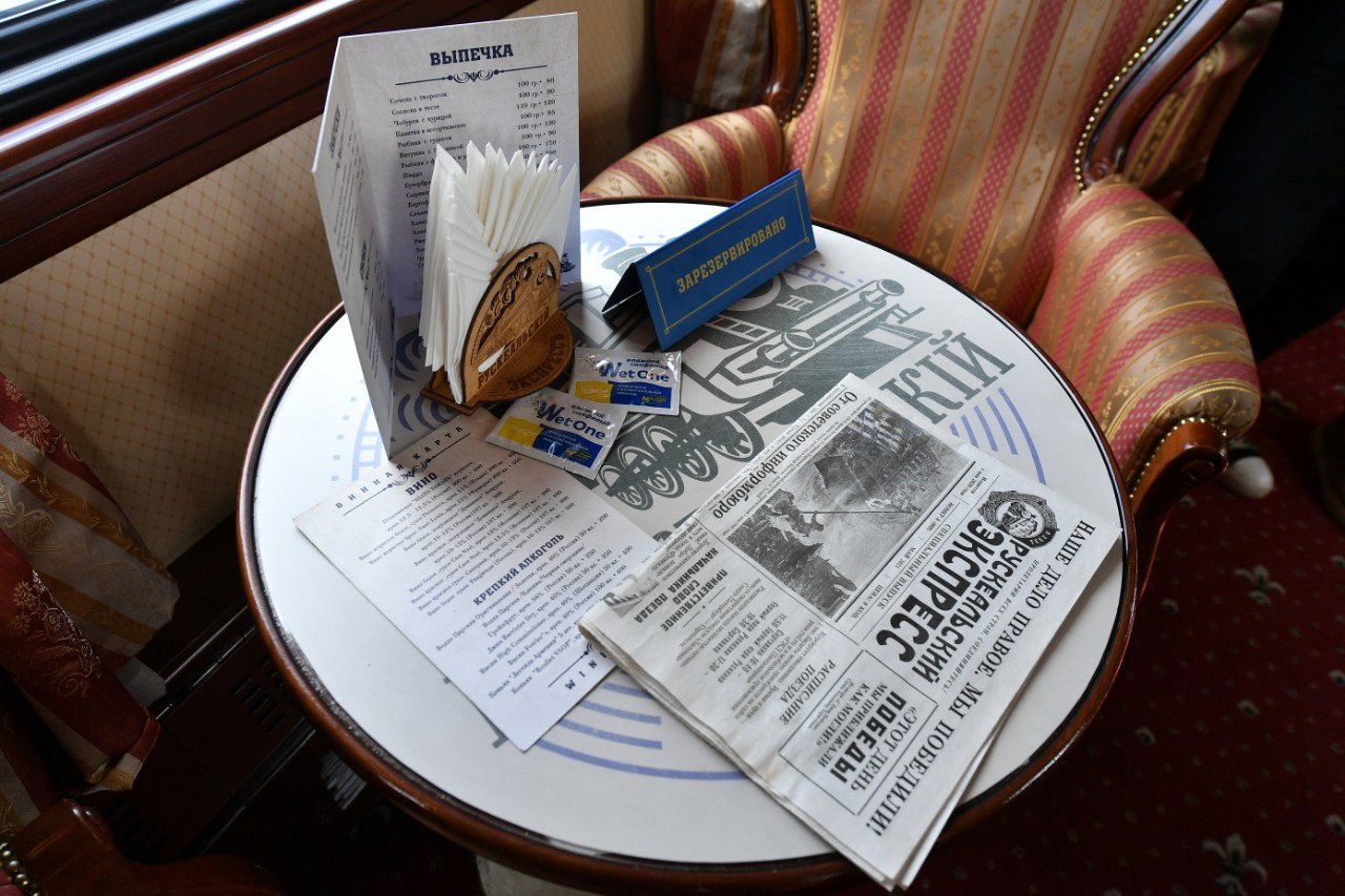 Напомним, что «Рускеальский экспресс» идет из города Сортавала в горный парк «Рускеала». Интерьеры вагонов выполнены в дореволюционном стиле и частично − с использованием советской символики. Чтобы организовать маршрут, специалисты восстановили 2,5 километра старой железной дороги.