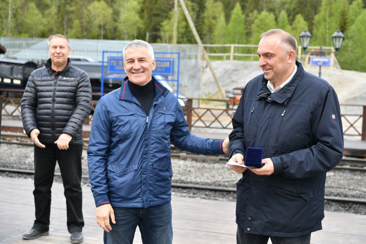 В горном парке «Рускеала», куда из Сортавалы переехали участники открытия нового маршрута, состоялось торжественное мероприятие в честь двухлетия поезда «Рускеальский экспресс» – единственного в России ежедневного круглогодичного ретроэкспресса. Причастных к функционированию состава на паровозной тяге сегодня наградил Глава Карелии, руководители «РЖД» и туробъекта. Собравшиеся почтили память основателя горного парка «Рускеала» Александра Артемьева, внесшего большой вклад в организацию ретропоезда.