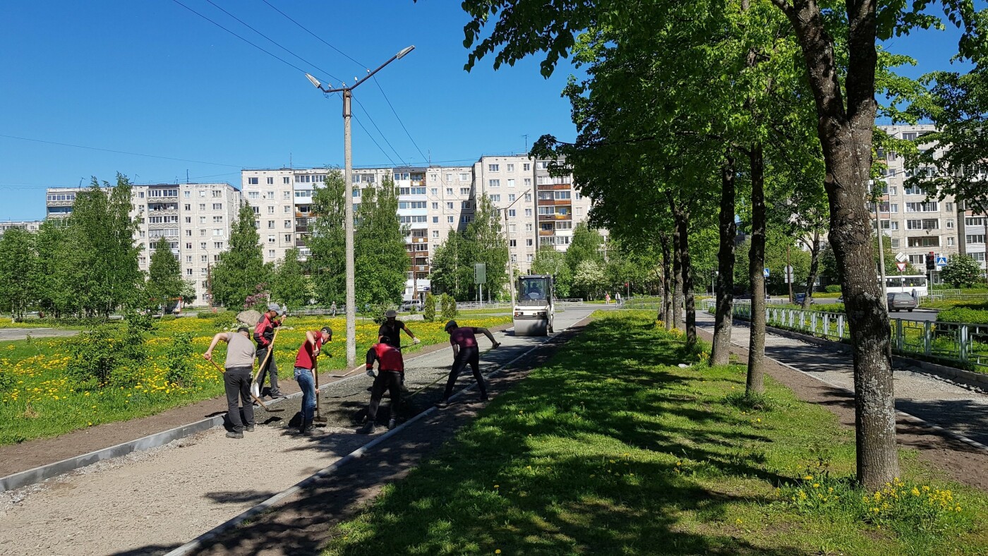 Специалисты Администрации проверили ход работ по благоустройству общественной территории в районе Сортавальского бульвара.