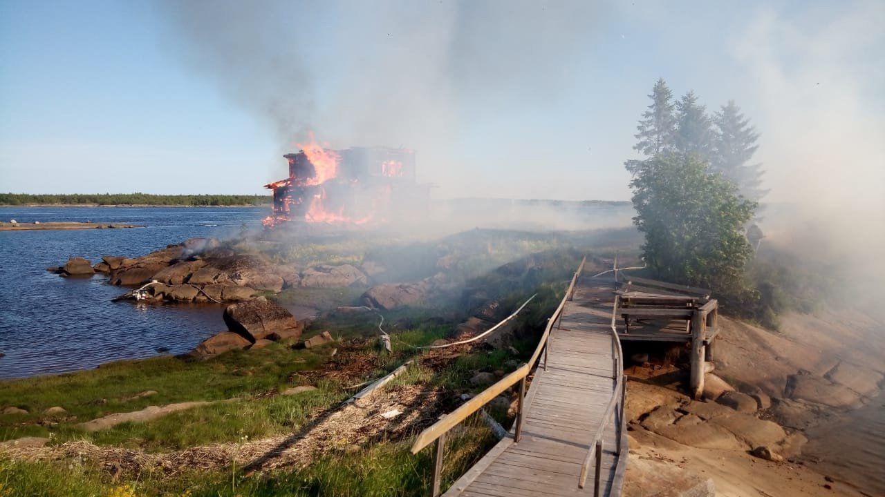 Вчера, 7 июня, вечером в поселке Рабочеостровске Кемского района произошел крупный пожар. Вспыхнул дом, который снимали в фильме Павла Лунгина «Остров». Спасти здание не удалось – пламя быстро распространилось и уничтожило деревянные конструкции. Подробностями и фото с места происшествия поделился паблик ГКУ РК «ОПС по Кемскому району».