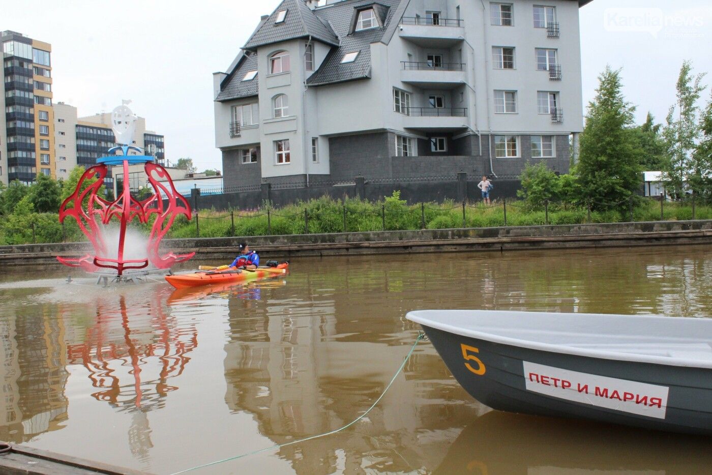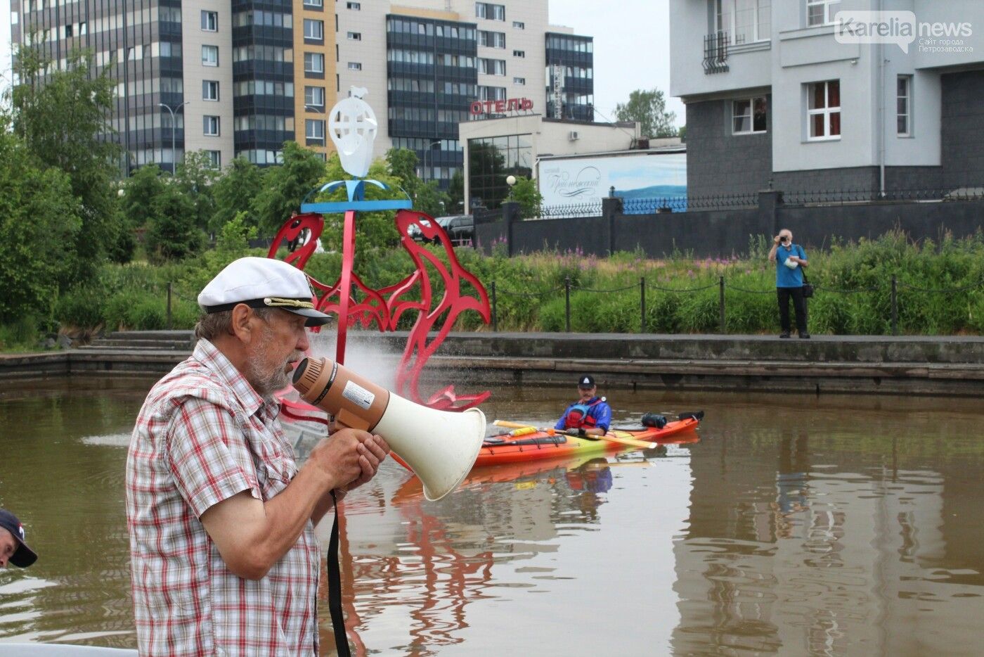 Отметим, что на радостное событие глава Петрозаводска, который очень хочет стать настоящим мэром и делает для этого все возможное, прибыл на собственном каяке.