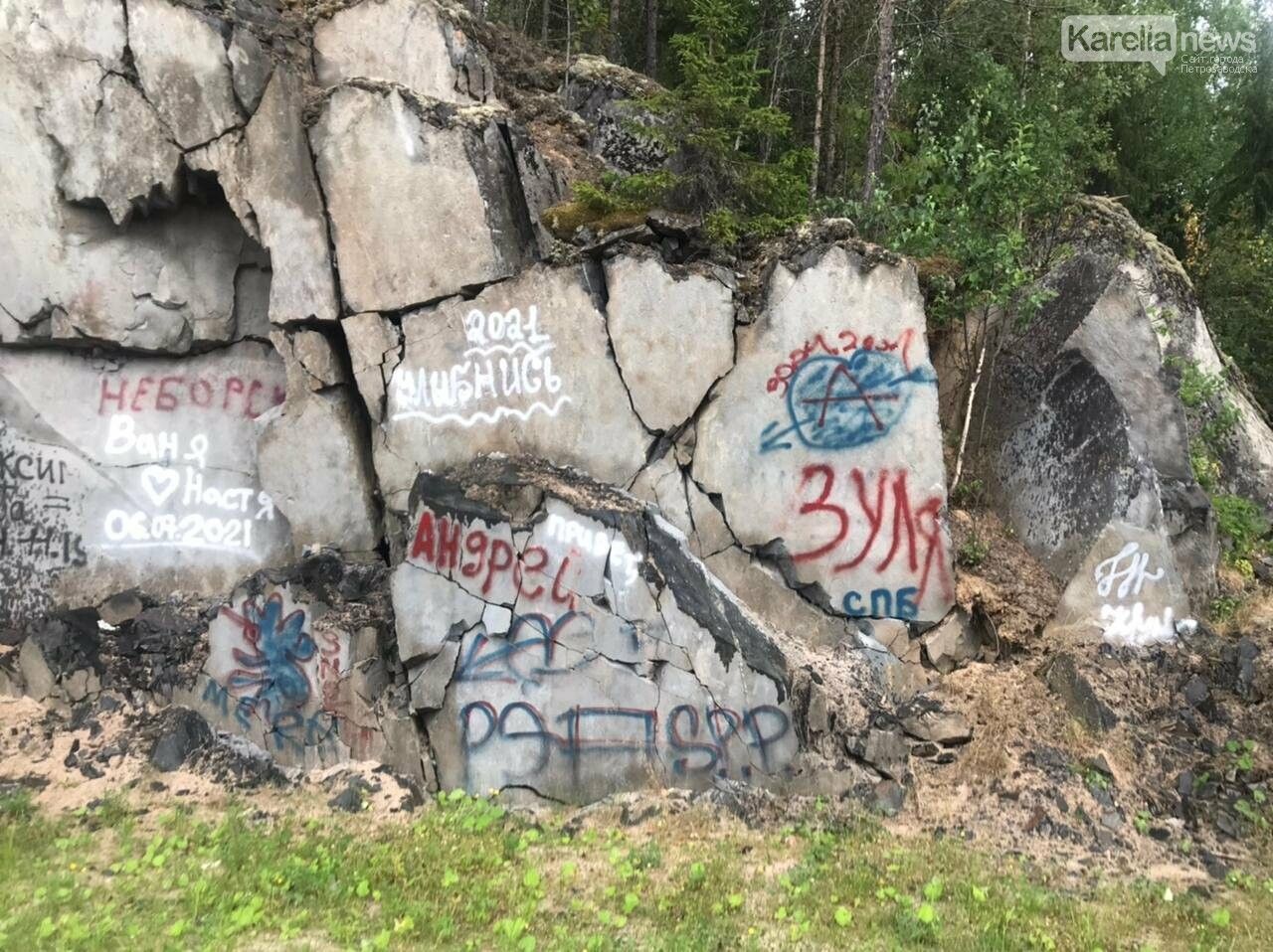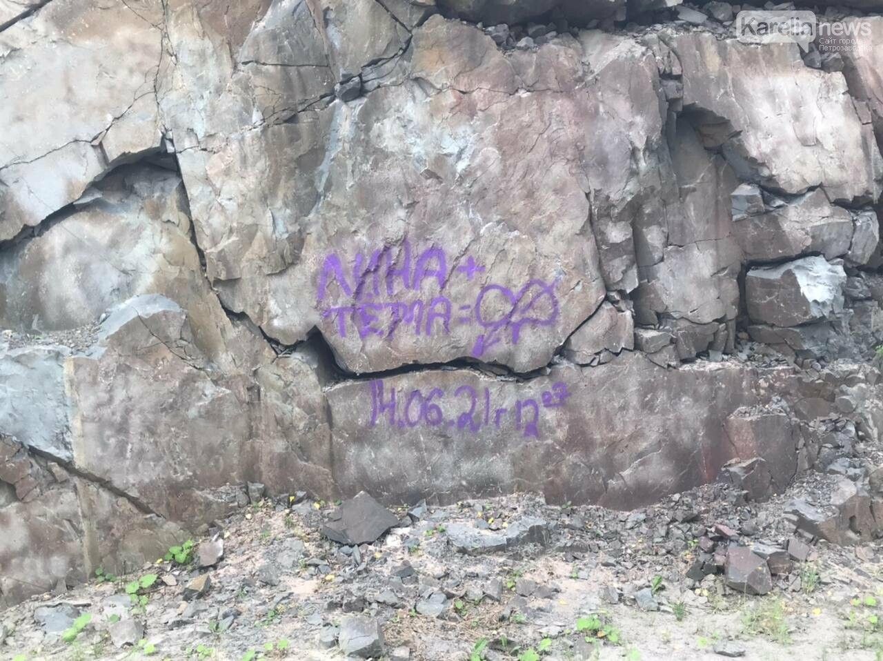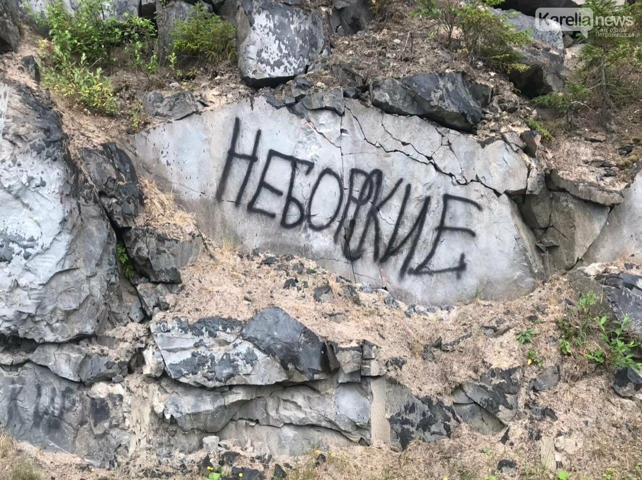 Портал «Карелия.Ньюс» продолжает следить за дикими нравами наших людей и их страстью к увлечениям древних предков, а именно наскальным рисункам. Правда, современные надписи ценность не представляют, в отличие от петроглифов.