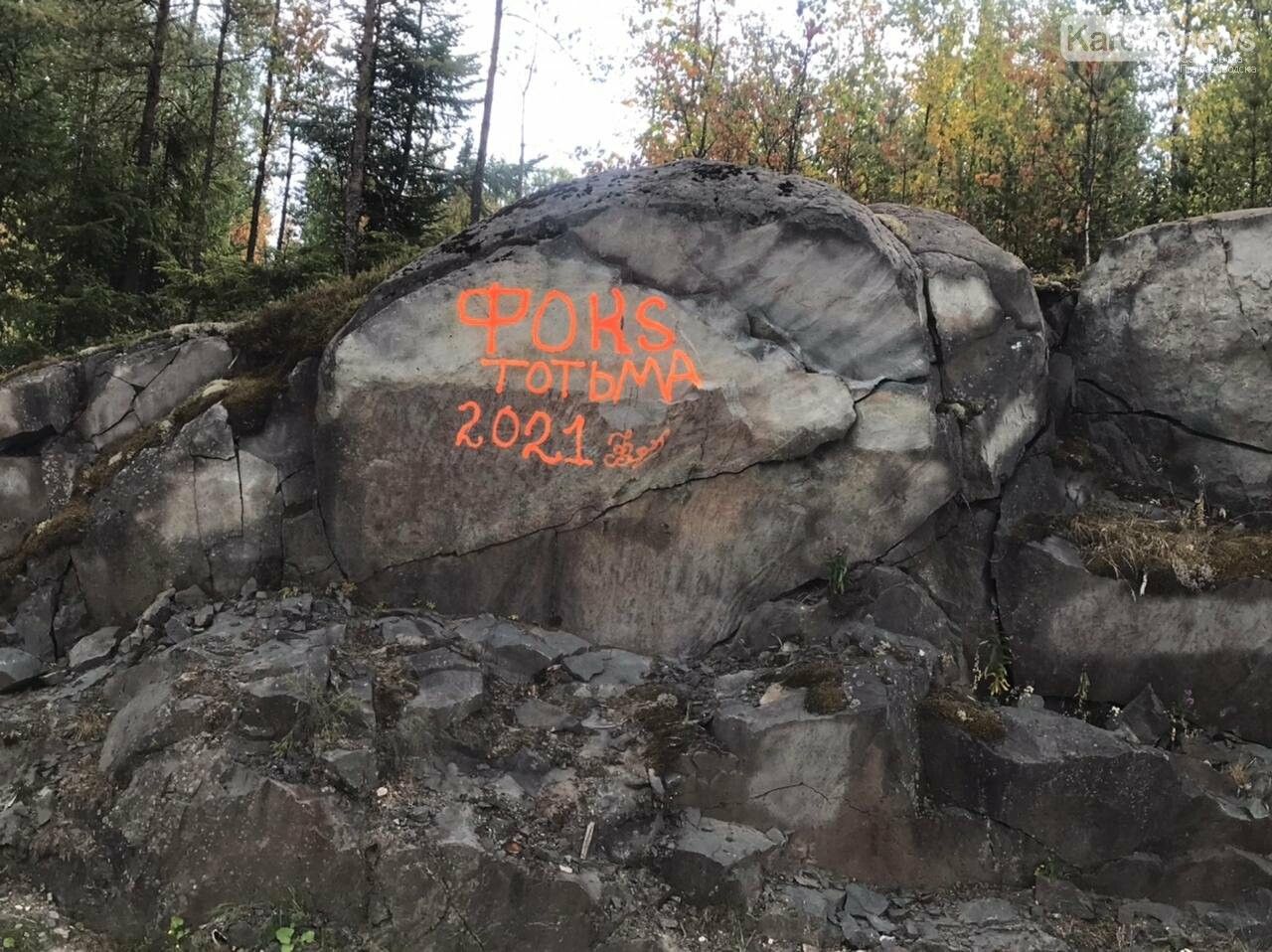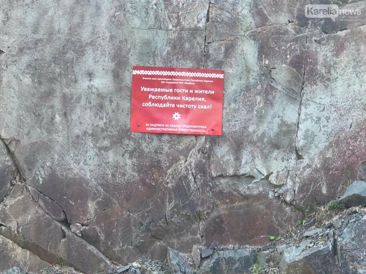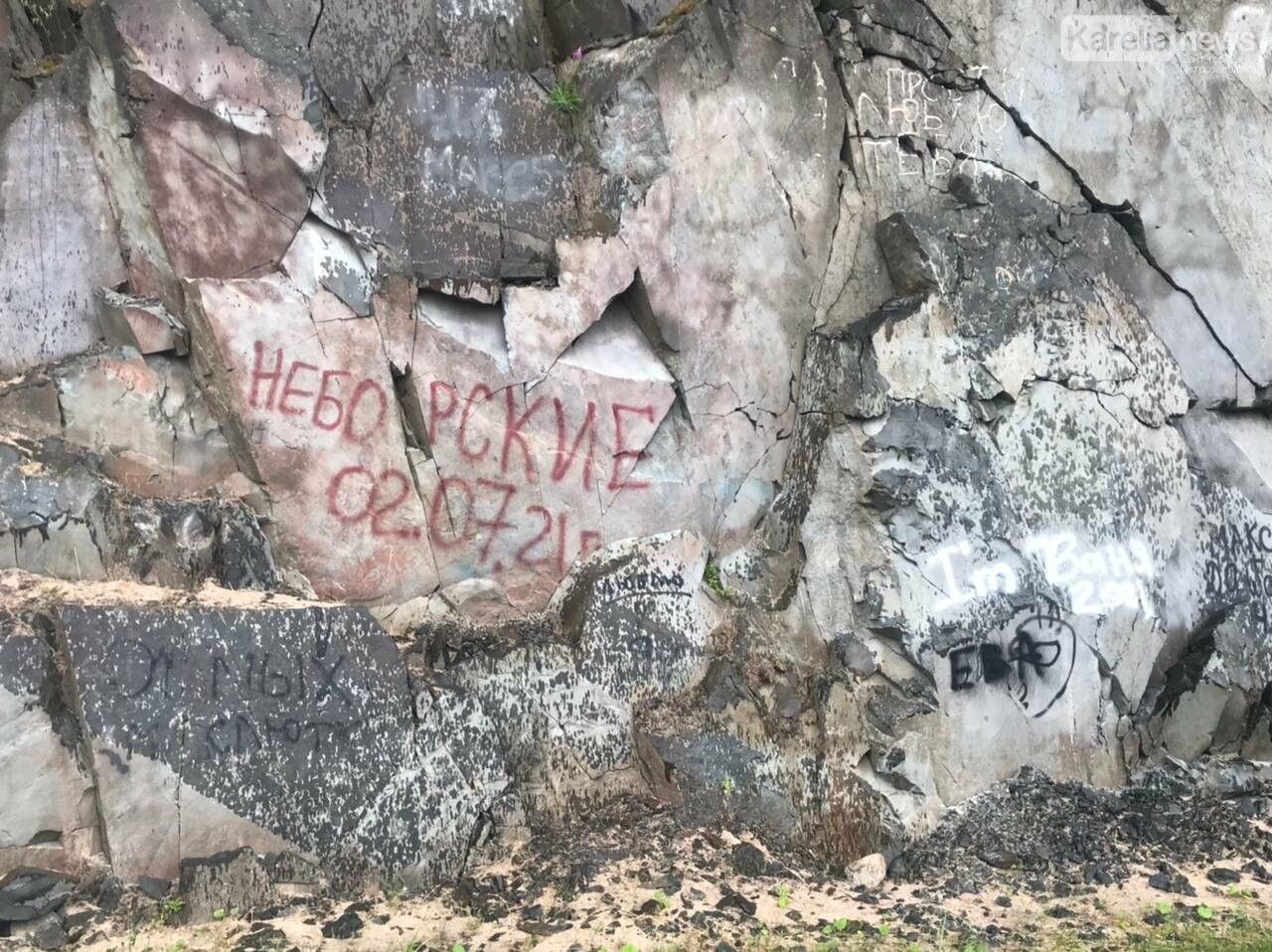 Поражает, что горе-художников не смутила ни табличка правительства Карелии о недопустимости рисунков, ни даже установленные камеры наблюдения. Творческий порыв у наших современных неандертальцев, вдохновлённых петроглифами, был такой, что никак не сдержать.