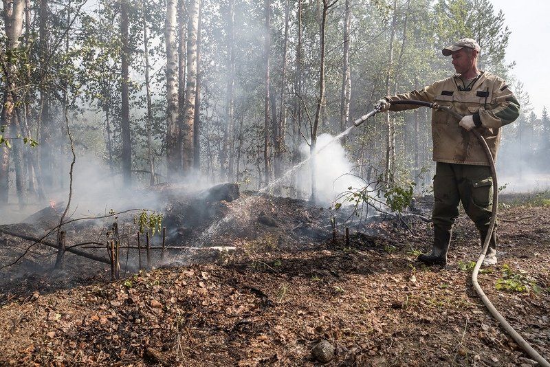 Крупный лесной пожар на территории Пряжинского района в квартале 130 Сяпсинского лесничества на площади 1200 га. Привлечены к тушению пожара 30 человек и 6 единиц техники. Сегодня планируется увеличение группировки сил для локализации пожара. Экскаватором естественную преграду (дорогу) расширили до 10 метров по северо-восточной кромке. Созданы минерализованные полосы и произведен отжиг по северной и западной кромке. По южной кромке распространению пожара препятствуют водоемы. 21 июля к тушению пожара привлечены представители 30 человек из Минобороны. 22 июля на пожаре работал вертолет Ми-8 с водосливным устройством. 24 июля завершены работы по опашке всей кромки пожара для его «окольцовывания». На северную кромку направлен бульдозер, который создаст минполосу, чтобы не допустить переход огня на кладбище. Сегодня планируется локализовать пожар.