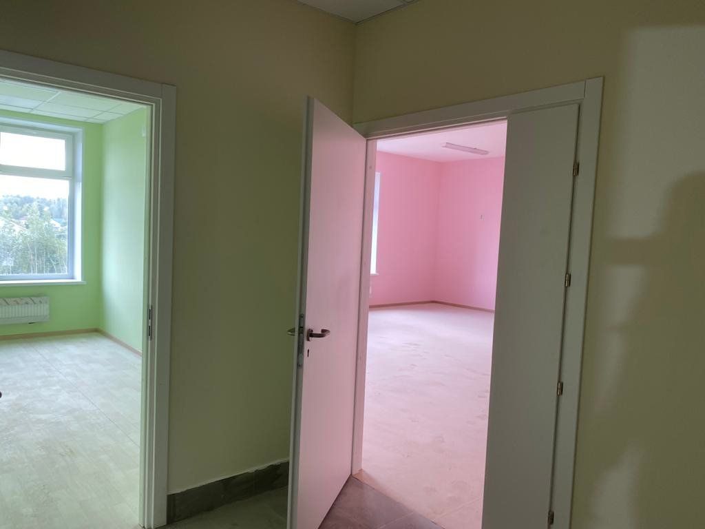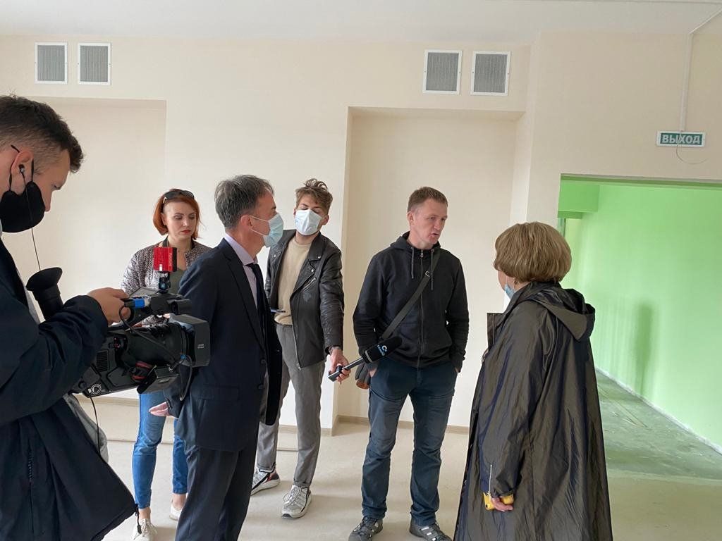 В настоящее время в здании идут отделочные работы. Закуплено оборудование для пищеблока, прачечной, спортивное оснащение, игрушки и пособия, приобретается мебель и мягкий инвентарь. Участники отметили просторные светлые залы для занятия спортом и музыкой и красочное оформление групп. В здании предусмотрены помещения для занятий в кружках и медицинский кабинет.