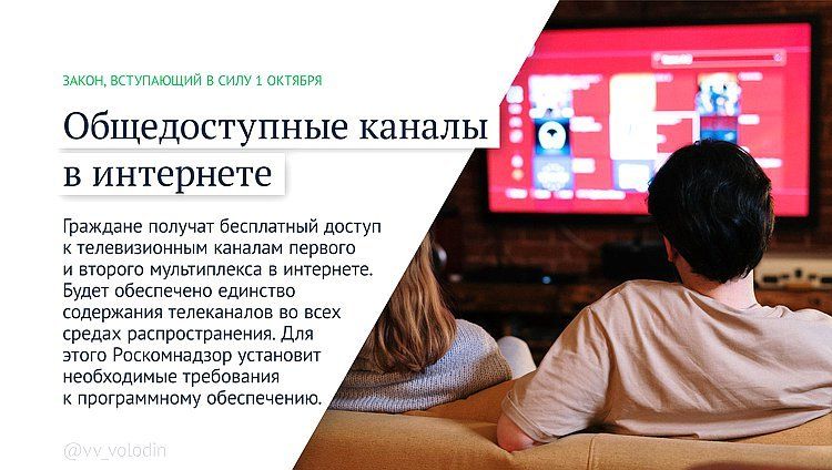 Также граждане получат бесплатный доступ к телевизионным каналам первого и второго мультиплекса в интернете. Для этого Роскомнадзор установит необходимые требования к программному обеспечению.