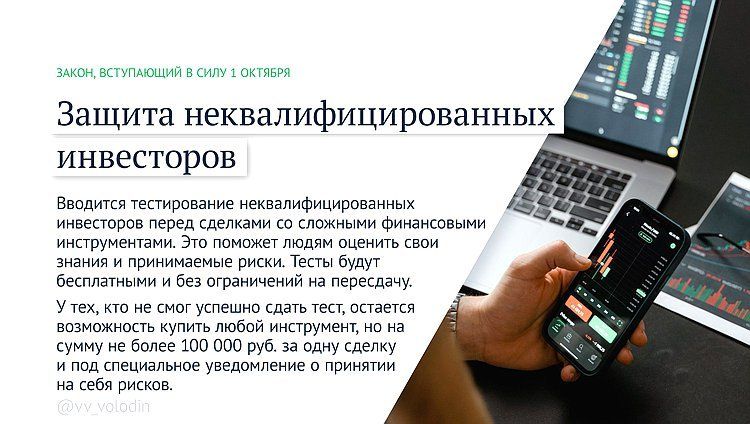 Ещё одно нововведение — защита неквалифицированных инвесторов. Согласно закону, перед сделками инвесторам необходимо будет пройти тестирование.