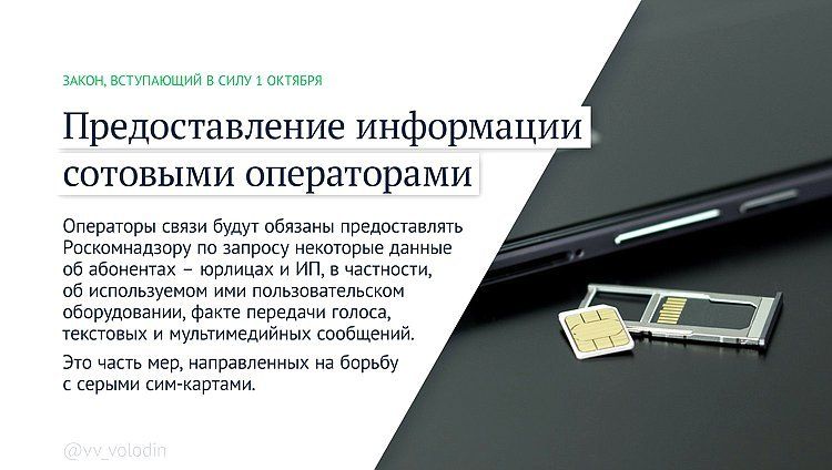 Отныне операторы связи будут обязаны предоставлять Роскомнадзору по запросу некоторые данные абонентов – юрлицах и ИП, в частности, об используемом ими оборудовании, их сообщениях. Предполагается, что это направлено на борьбу с серыми сим-картами.