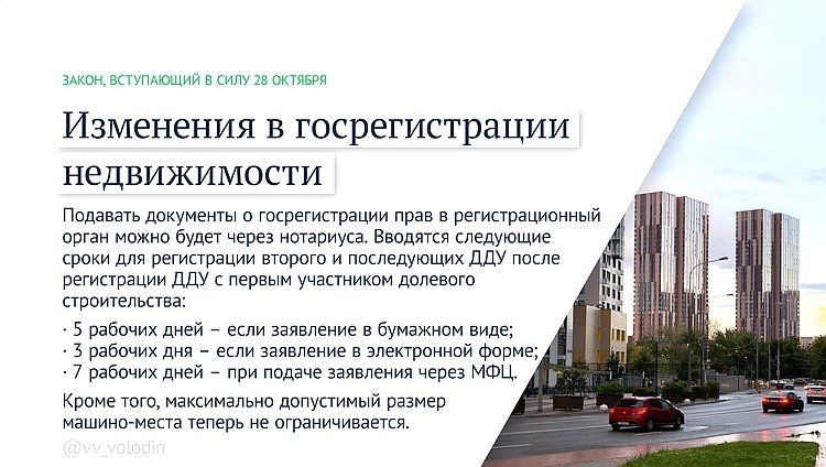 Введение института типовой проектной документации. Таковой будет признаваться получившая положительное заключение госэкспертизы, а также экономически эффективная документация. Ее будут вносить в единый госреестр. Вступают в силу также изменения в госрегистрации недвижимости — подать документы можно через нотариуса.