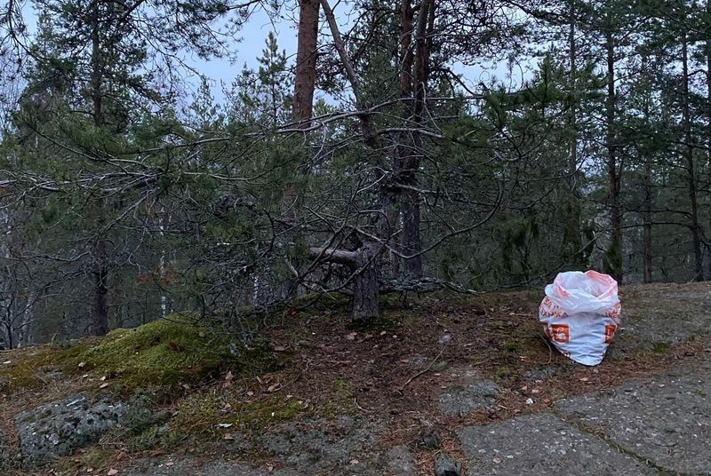 Туристы продолжают развешивать на горе Сампо мусор.