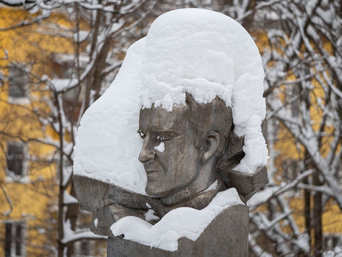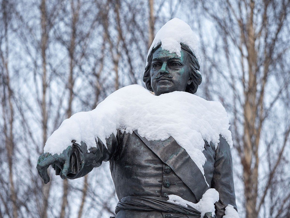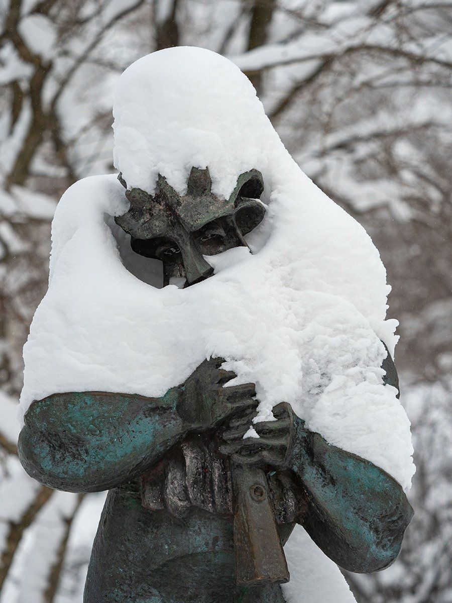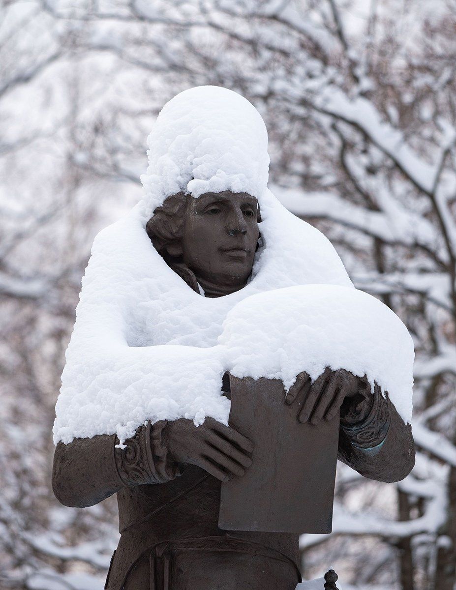 Известный петрозаводский фотограф опубликовал снимки городских памятников в снежных «шапках» и «шубках».