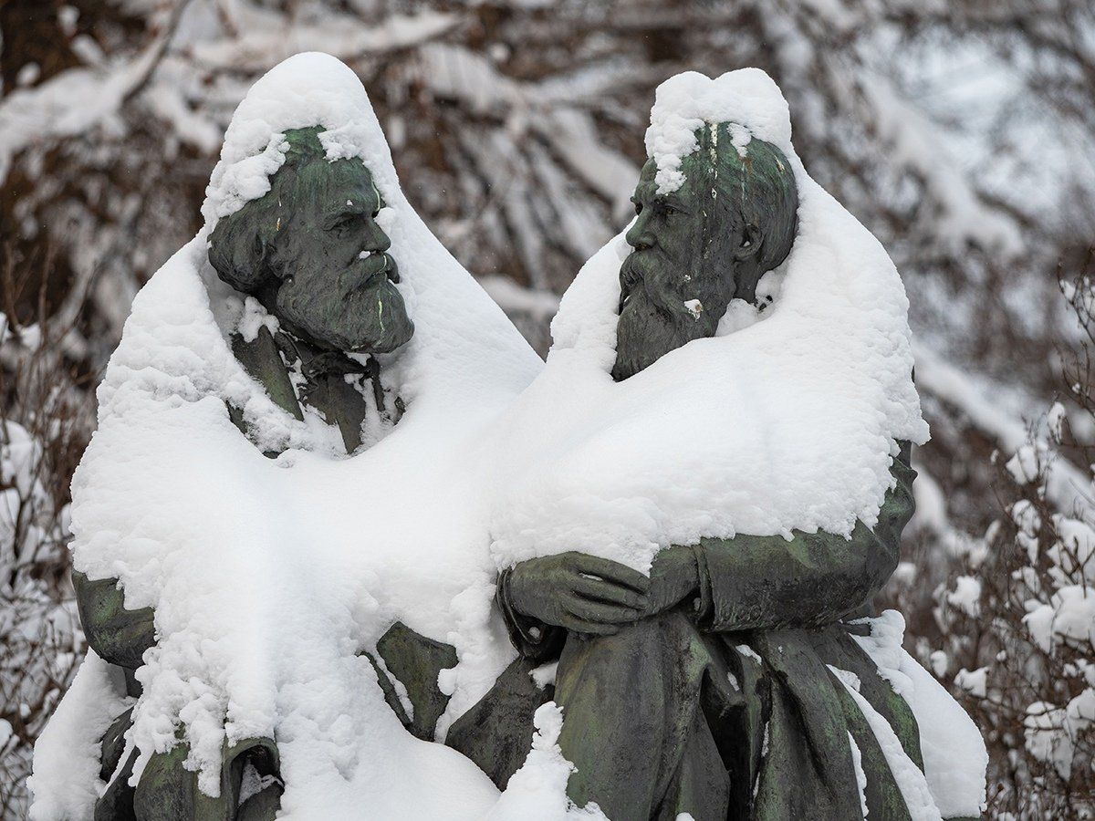 Снег на носу Владимира Ильича лег таким причудливым образом, что вождь мирового пролетариата стал похож на персонажа из научно-фантастических произведений.