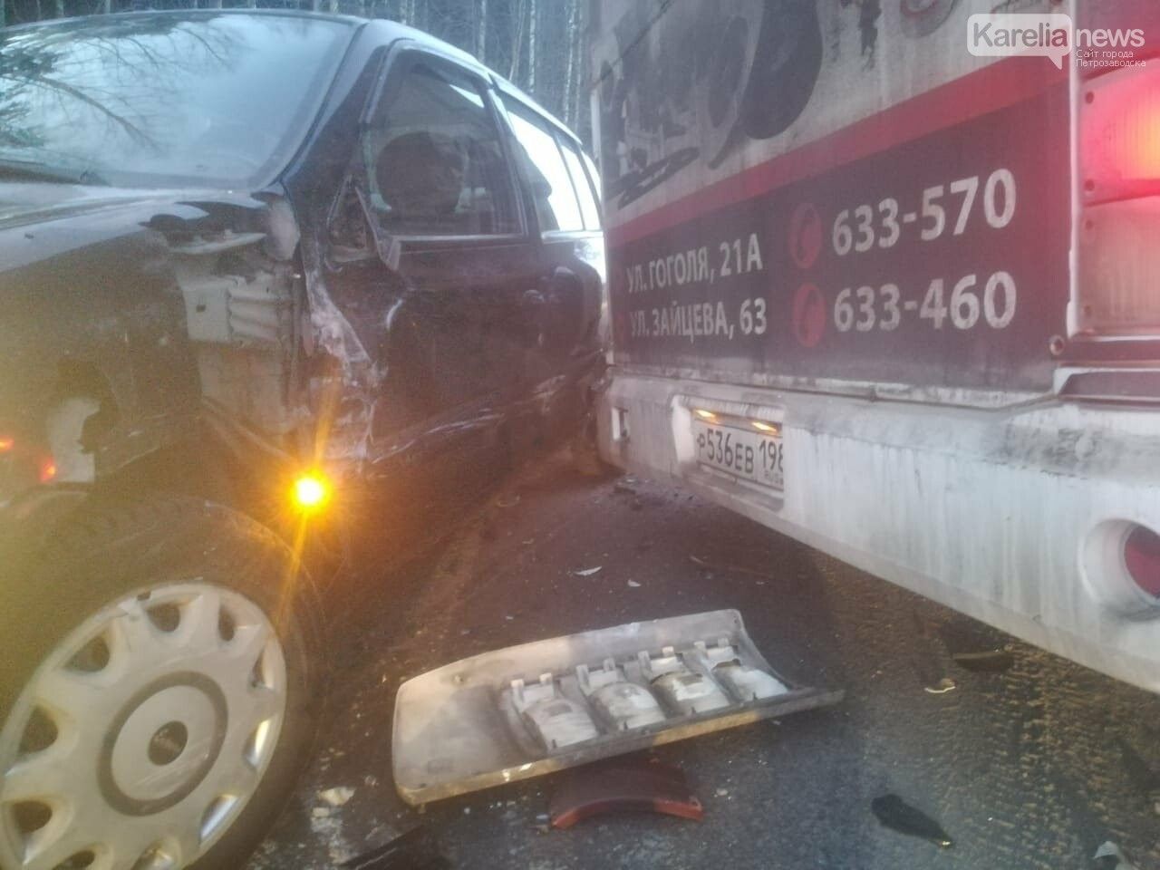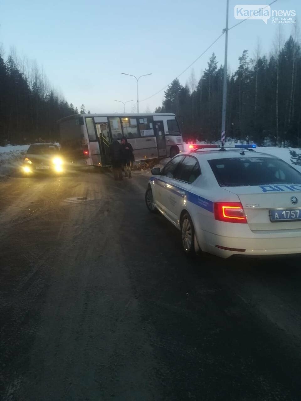 Утром 26 января в карельской столице произошло ДТП с участием маршрутки. На Лососинском шоссе столкнулись «ПАЗ» и иномарка. Читатель портала «Карелия.Ньюс» Артур прислал фото и видео с места происшествия.