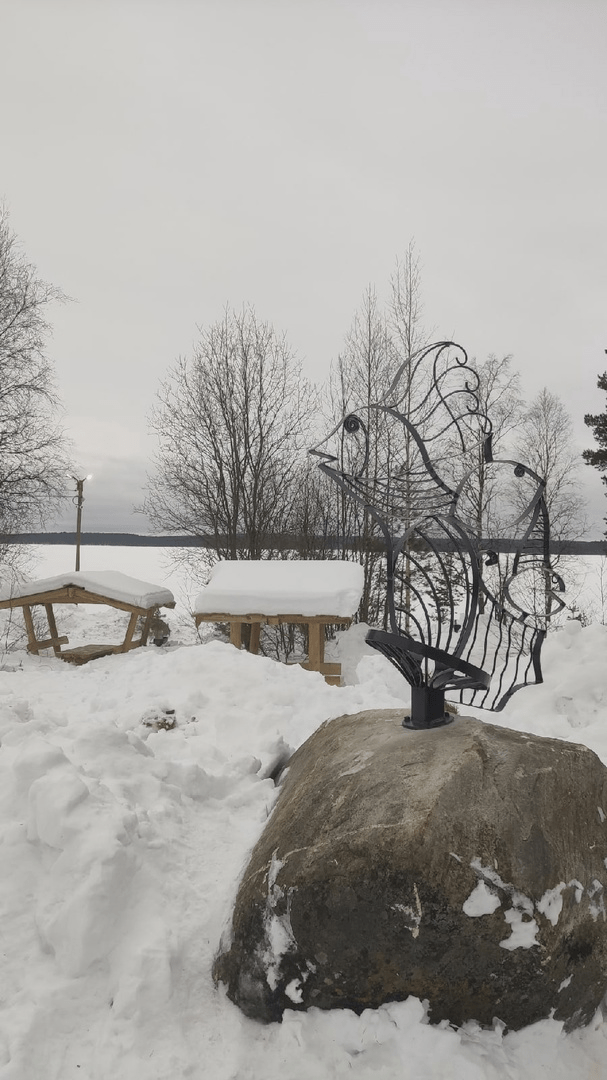 Рыбы «облюбовали» камни. На больших фактурных валунах установили три фигурки. Фотографии арт-объектов опубликовал паблик «Совета Костомукшского городского округа».