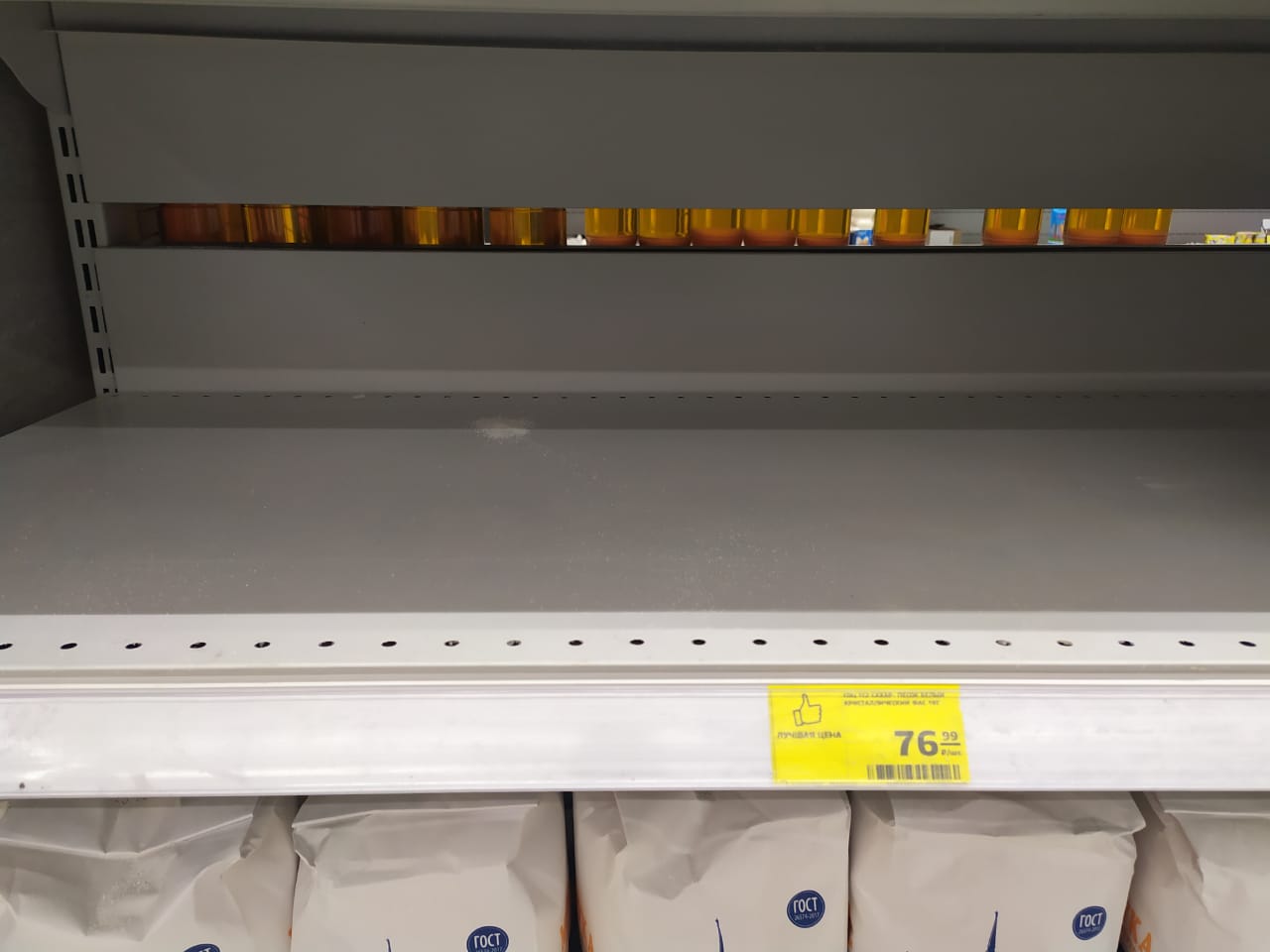 Люди, по словам сотрудников, по-прежнему закупают его килограммами, впрок. Спрос в марте вырос в три раза по сравнению с февралем. Цена тоже подросла. В тех точках, которых побывал портал «Карелия.Ньюс», стоимость ходового продукта от 76 до 94 рублей 50 копеек за килограмм. В январе она была 53 рубля 44 копейки.