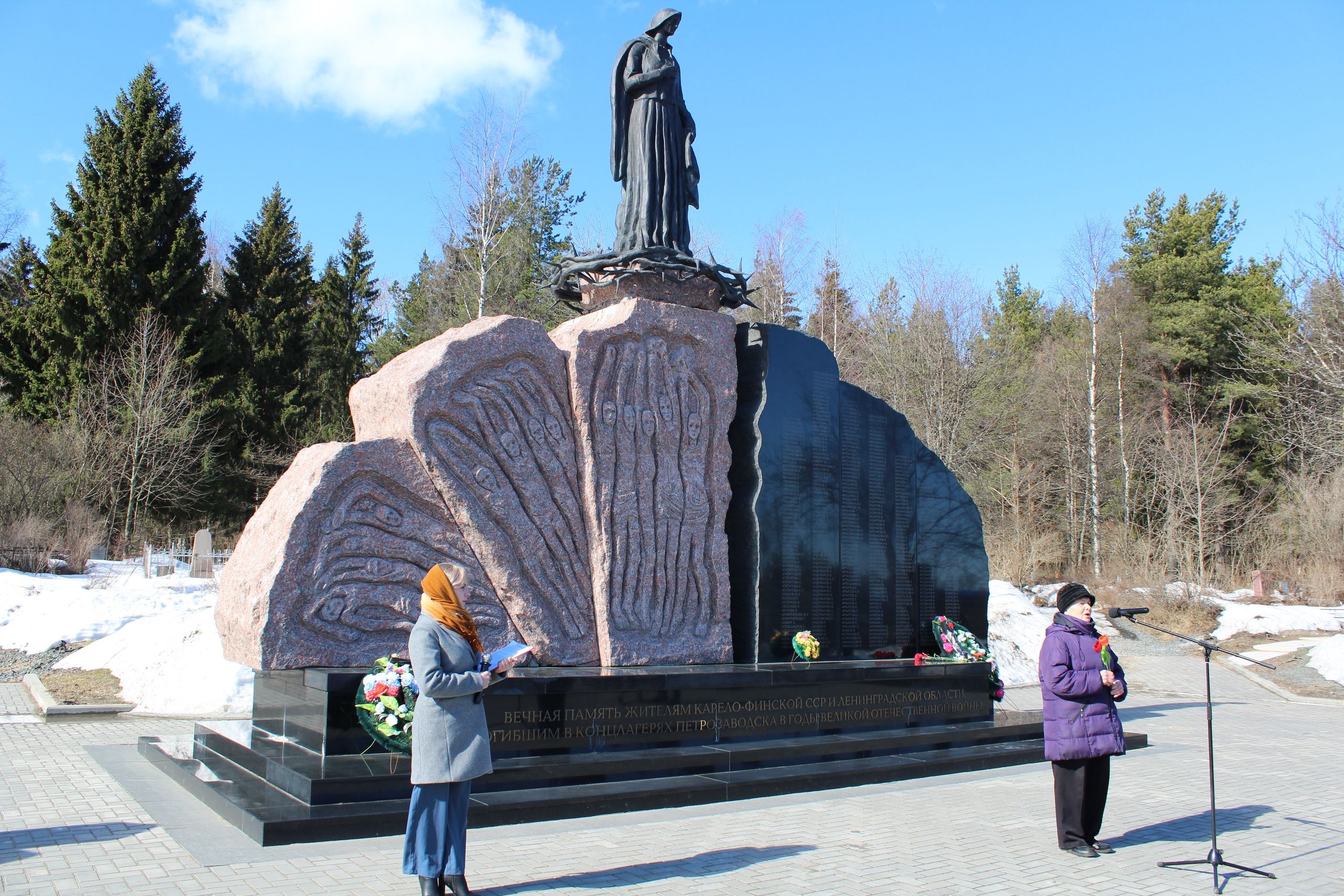 Памятная церемония прошла в «Песках» у мемориала погибшим узникам концлагерей. Перед участниками выступила председатель Карельского союза бывших малолетних узников фашистских концлагерей Клавдия Нюппиева. Она напомнила, что на каменных плитах мемориала высечены фамилии погибших с февраля по декабрь 1942 года.