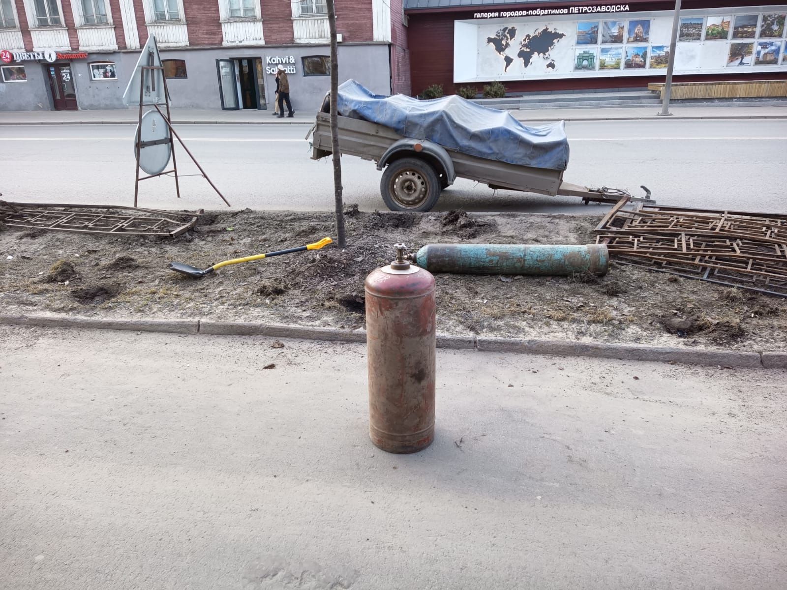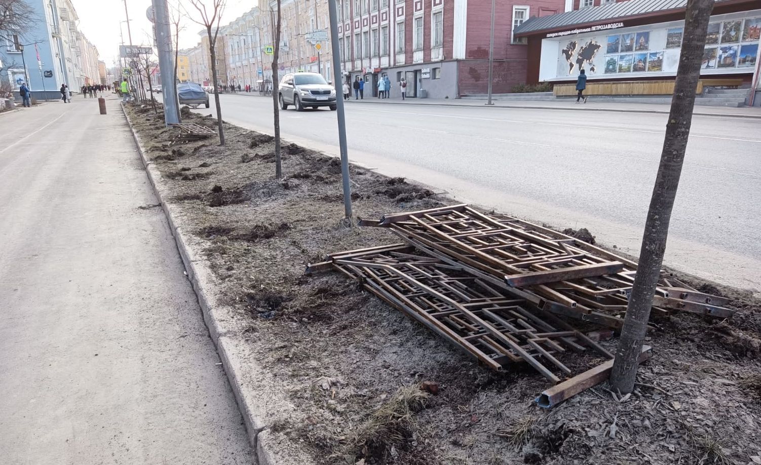 В карельской столице продолжается демонтаж заборов на главном проспекте.