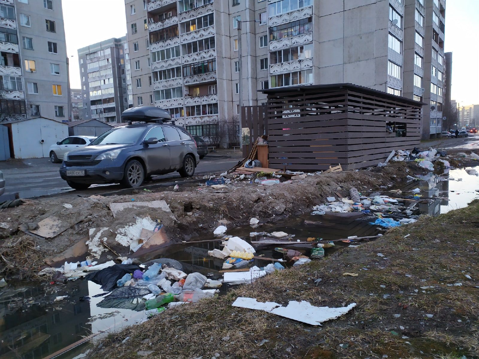 Они пришли на смену старым площадкам открытого типа. С тех мусор разлетался, его разносили птицы и животные. Но и эти, новые, оказались не слишком надежными. Эти кадры мы сделали на Древлянке.