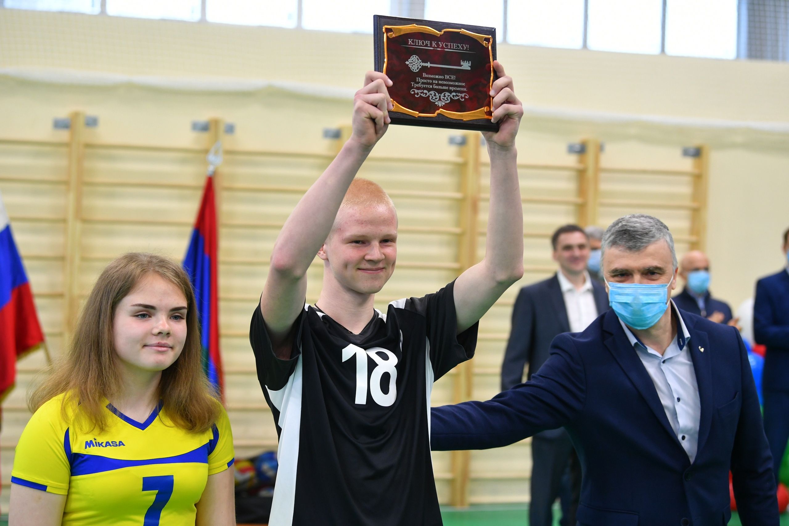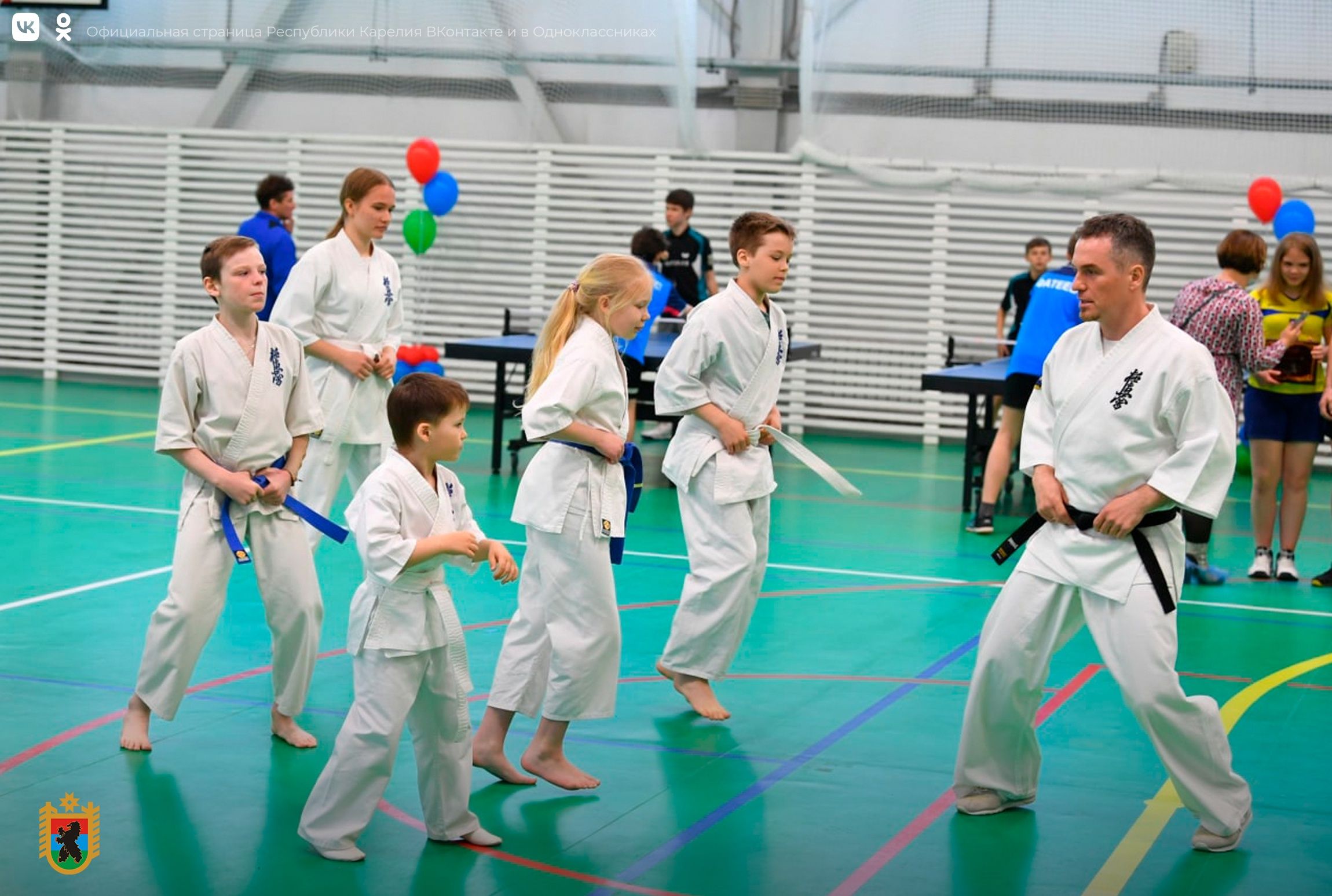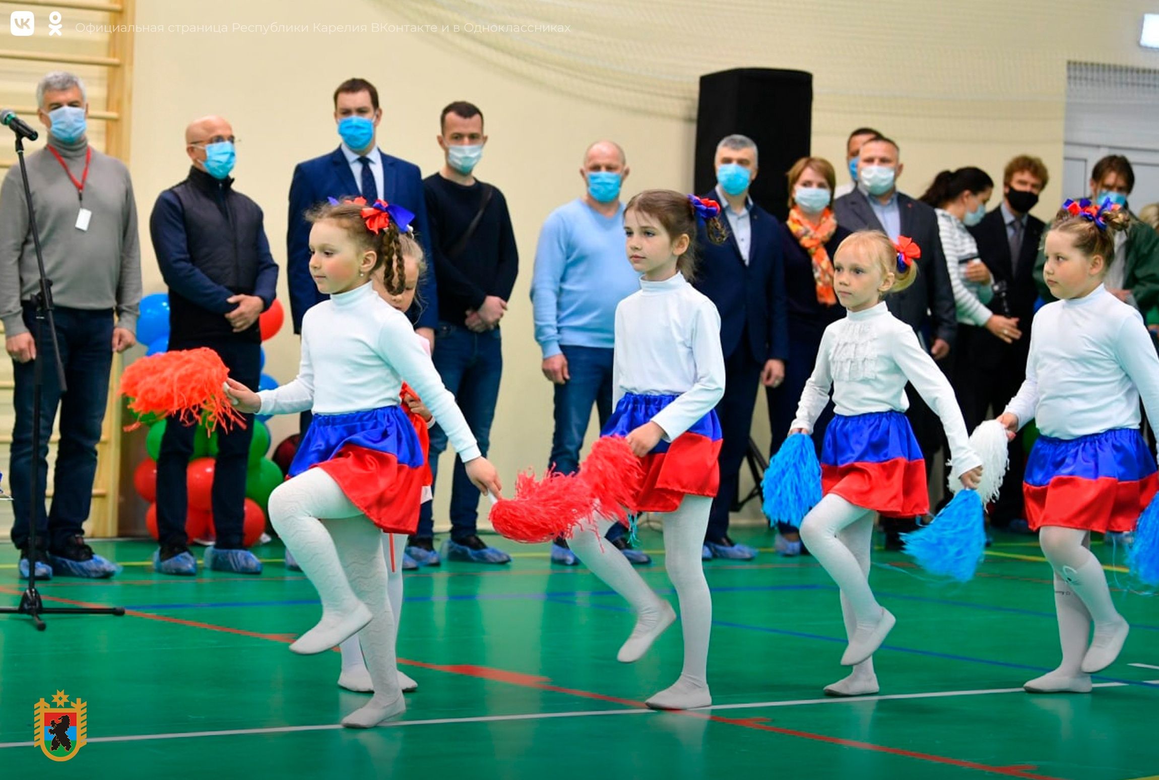 В честь открытия комплекса с показательными номерами выступили юные спортсмены Медвежьегорска. А символический ключ от здания вручили воспитанникам Детско-юношеской спортивной школы № 2 Медвежьегорска — призерам чемпионата Карелии по волейболу Екатерине Приймак и Прохору Федулину.