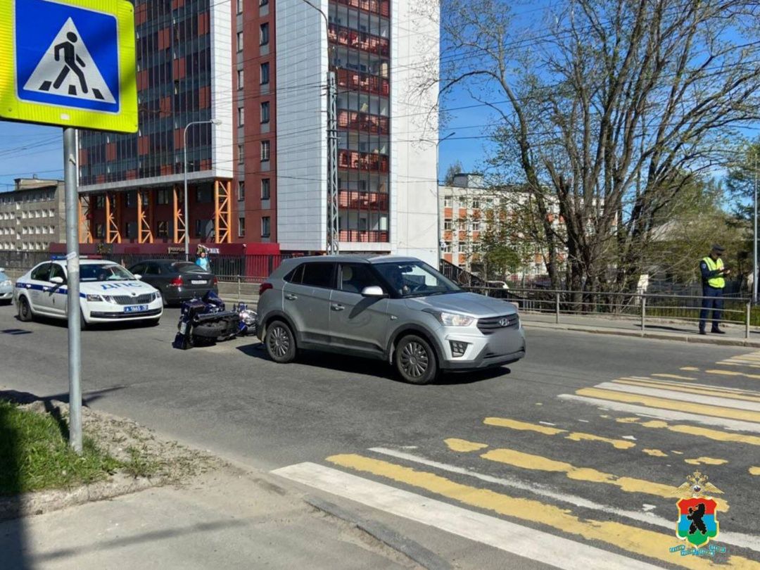 По предварительной информации полиции, сегодня, 22 мая, в 9.00 у дома № 61 на Первомайском проспекте в Петрозаводске столкнулись автомобиль Hyundai и мотоцикл, которые ехали в попутном направлении.