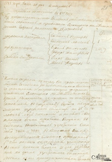 Фото: Из журнала приказа общественного призрения — о завершении строительства в Петрозаводске здания городской больницы и об обеспечении больницы необходимым оборудованием, 26 июня 1785 г.