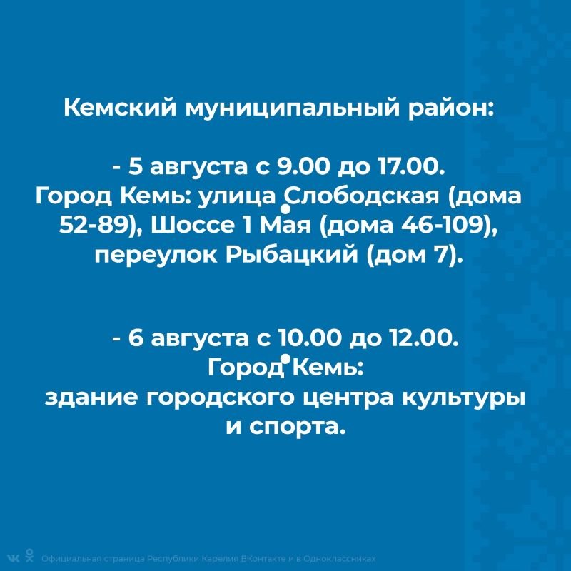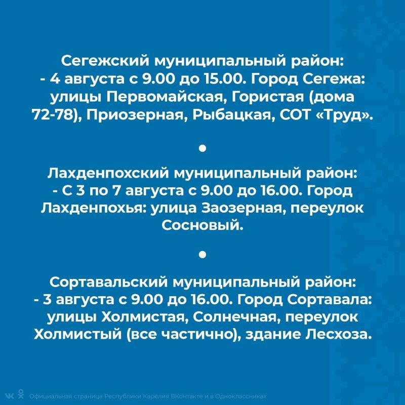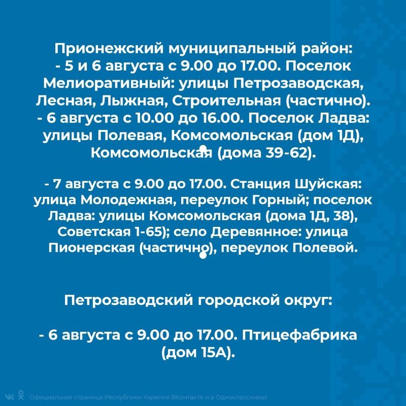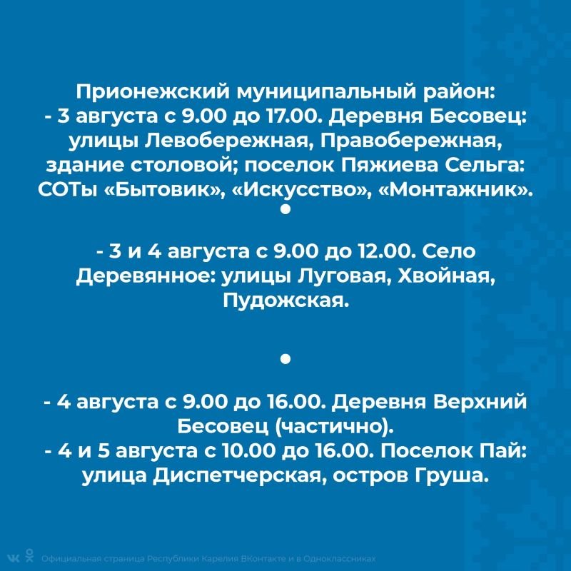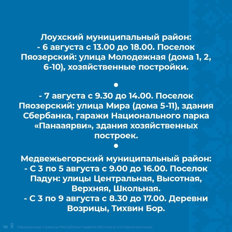 График работ и список районов предоставлен официальной группой правительства Республики Карелия «ВКонтакте»