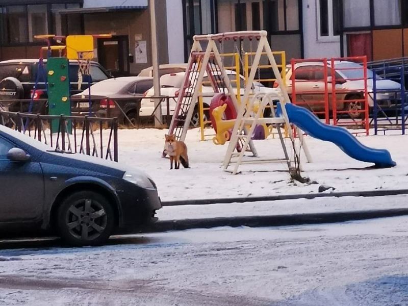 Речь идет о жилом комплексе «Скандинавия» в Петрозаводске поселилась лиса. Последнее время лису часто видели около домов. Животное осмелело и выходило к людям даже днем, гуляло по территории садика и на игровой площадке.