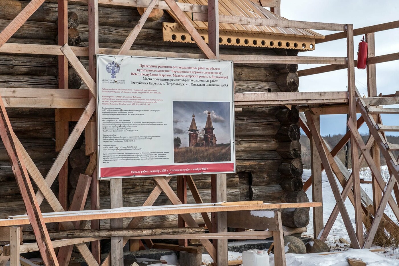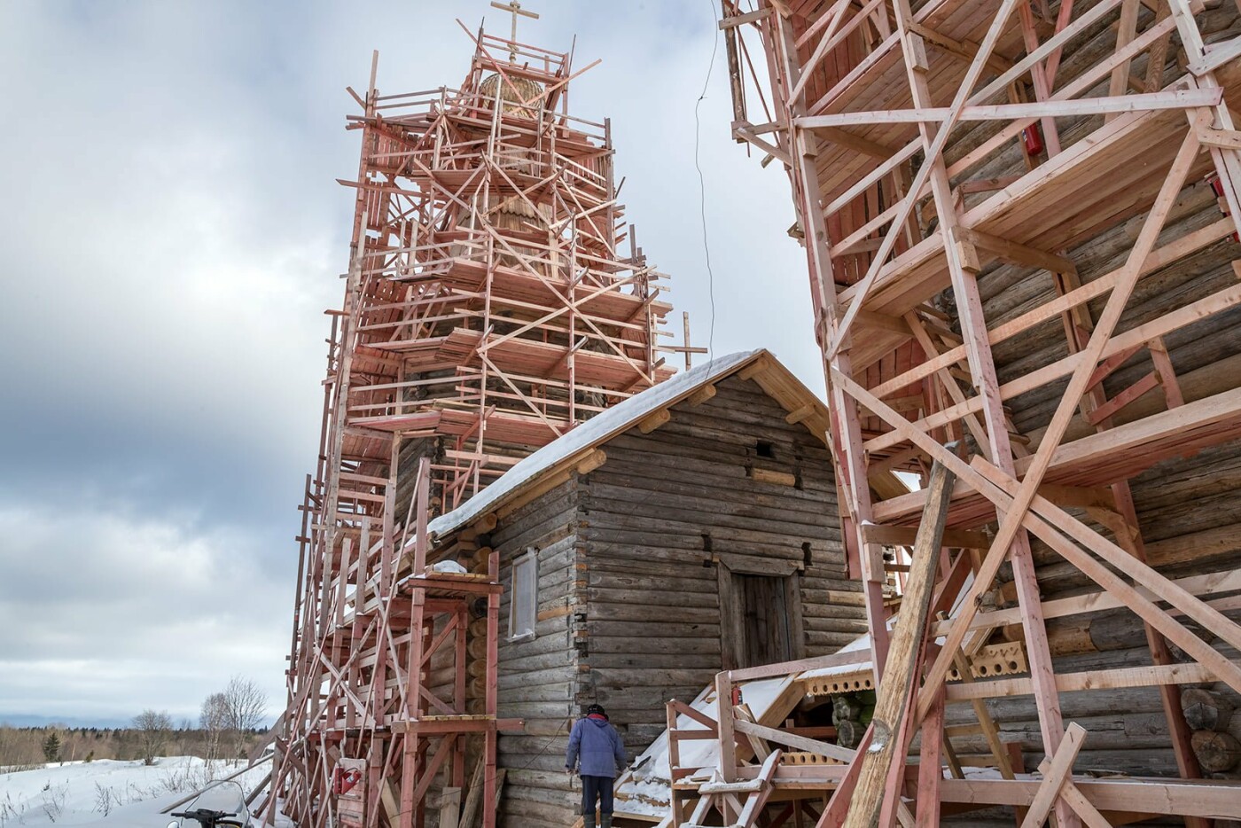 С тех пор храм пытались реставрировать несколько организаций, которые откровенно провалили проект. В 2019 году конкурс выиграла санкт-петербургская компания «Анфилада», которая тут же наняла субподрядчика в лице Архитектурно-реставрационного центра «Заонежье». Специалисты центра перевезли остатки гниющих бревен из Типиниц в Петрозаводск, где и началось восстановление церкви. За эти пару лет реставраторам удалось сделать невозможное – практически восстановить уничтоженный храм.