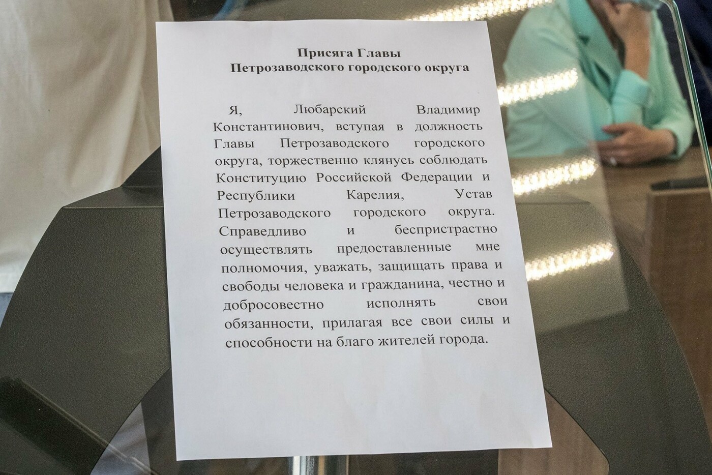 Владимир Любарский принял присягу и вступил в должность Главы Петрозаводского городского округа. Церемония инаугурации прошла сегодня в Администрации карельской столицы.